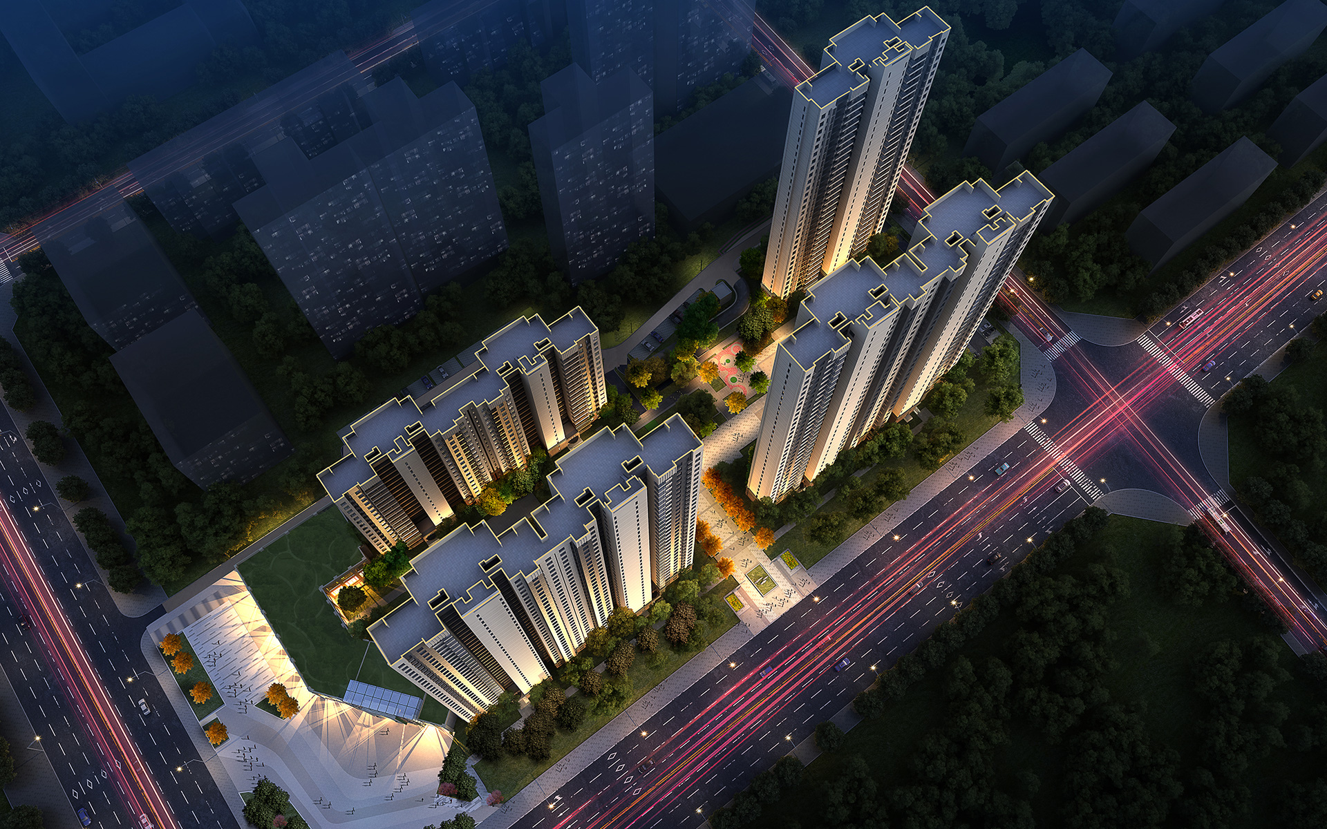 金为.潇湘锦城位于湖南怀化市湖天路与刘塘路交汇处. 项目拥有住宅、商业街区两大业态。适当选取多种城市元素. 通过造景手法、 材料、 色调融入生活的气息,将建筑的气质演绎得淋漓尽致。